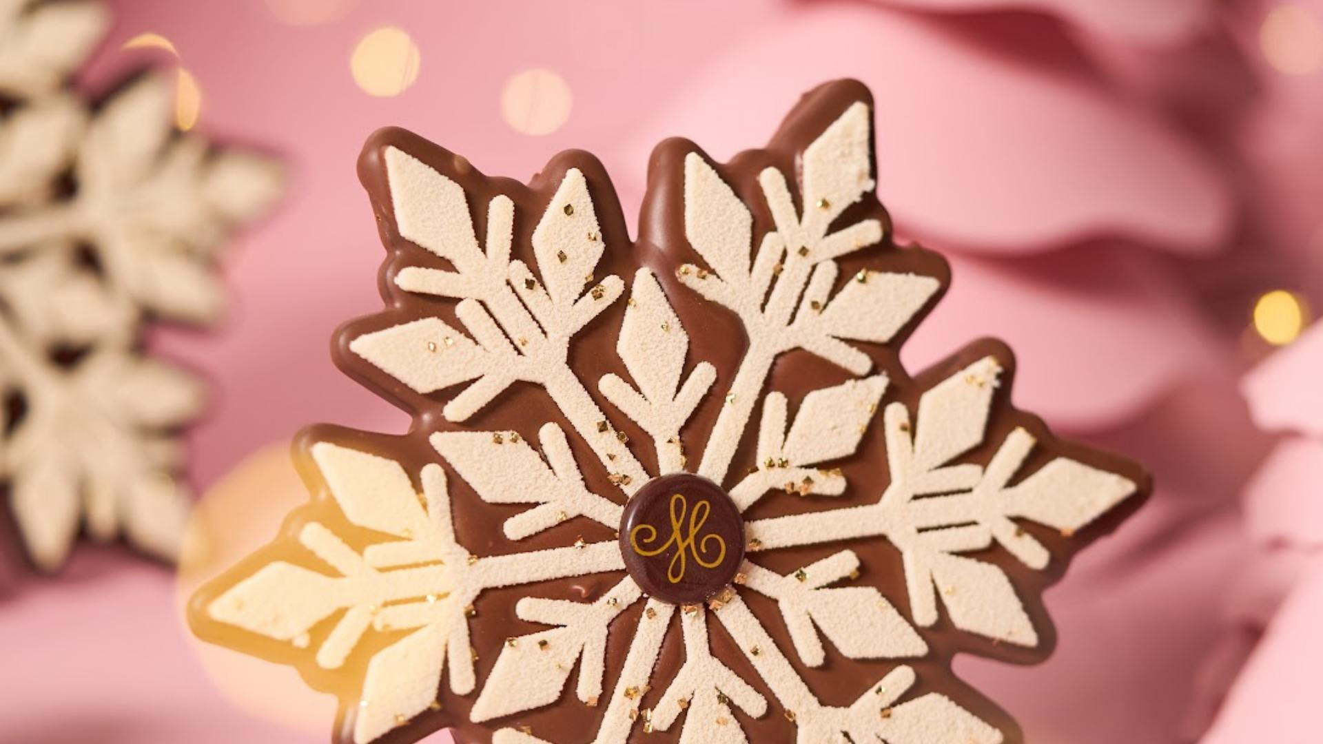 Dark chocolate snowflake, almond and hazelnut praliné