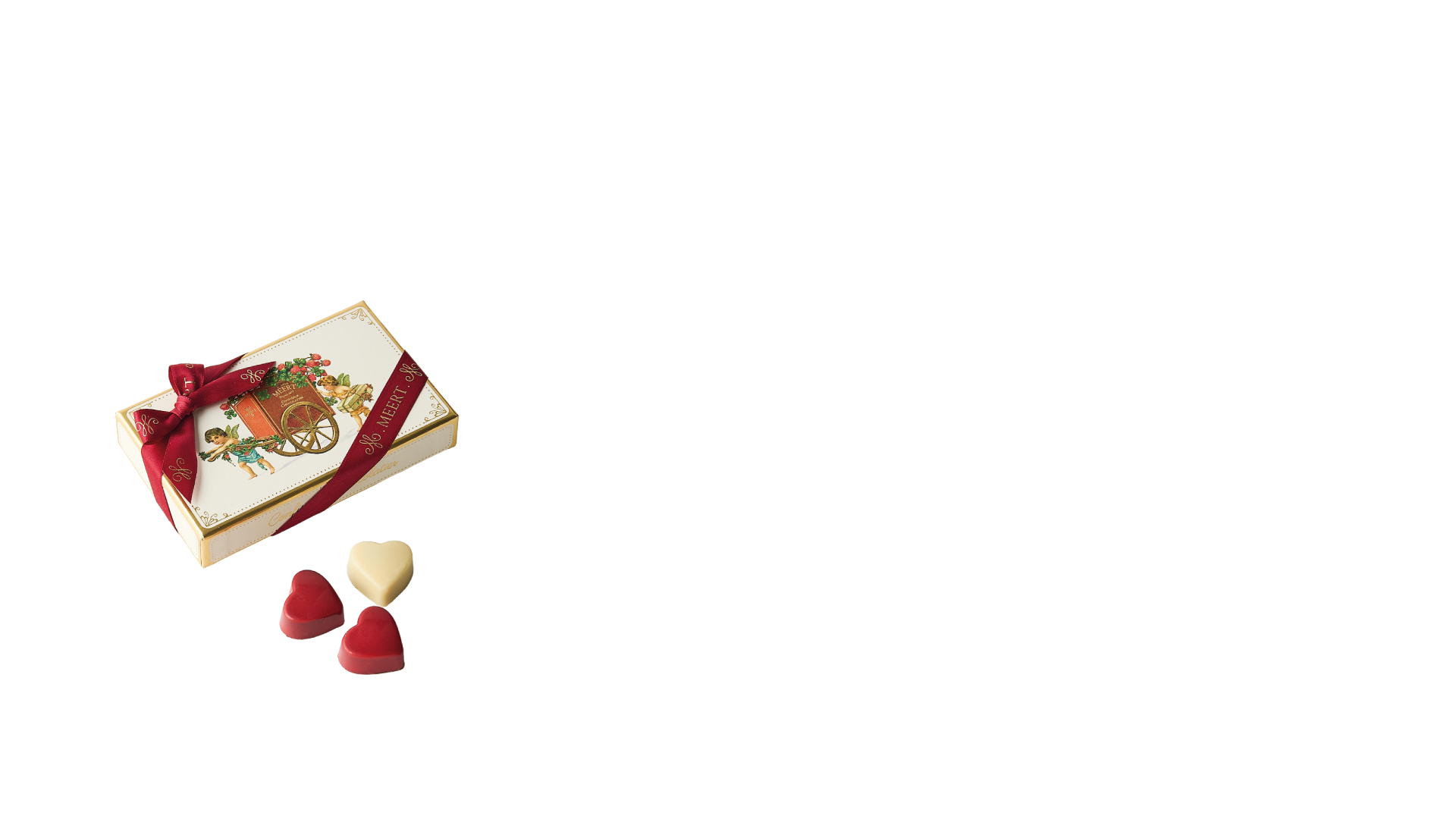 Cœurs en chocolat : 6 cœurs blancs (praliné amandes) et 6 cœurs rouges (ganache passion).
